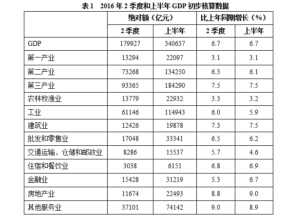 1.【解析】B。由表1可知,2016年2季度GDP絕對額為179927億元,比上年同期增長6.7%,則2015年2季度GDP絕對額為